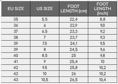 Note: If your feet are too wide. please increase one size. if your feet are too narrow. please order according to the normal size