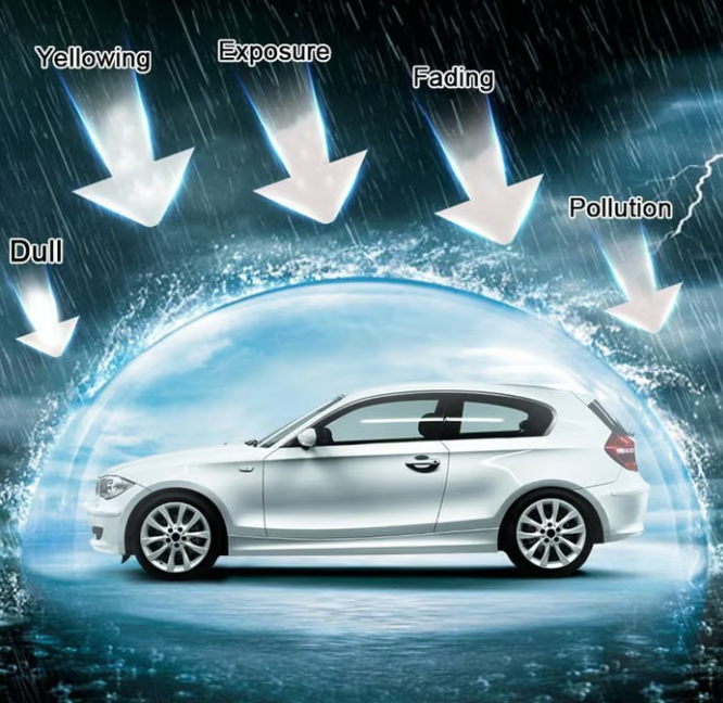 Glass Oil Film Remover effectively removes oily substances from car windshields, providing a clearer, unobstructed view even in rainy weather.