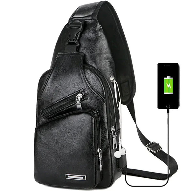 Men's Multifunctional High-Quality Leather Chest Bag * 1