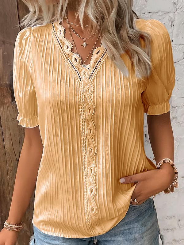 🔥Show off your breezy style wearing this V Neck Plain Lace Elegant Shirt.